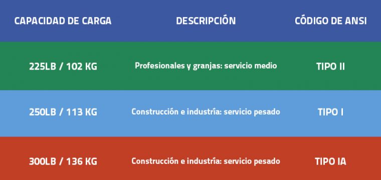 La carga total soportada por una escalera o plataforma de trabajo incluye el peso combinado del usuario, la ropa, las herramientas y cualquier material que esté en la escalera.