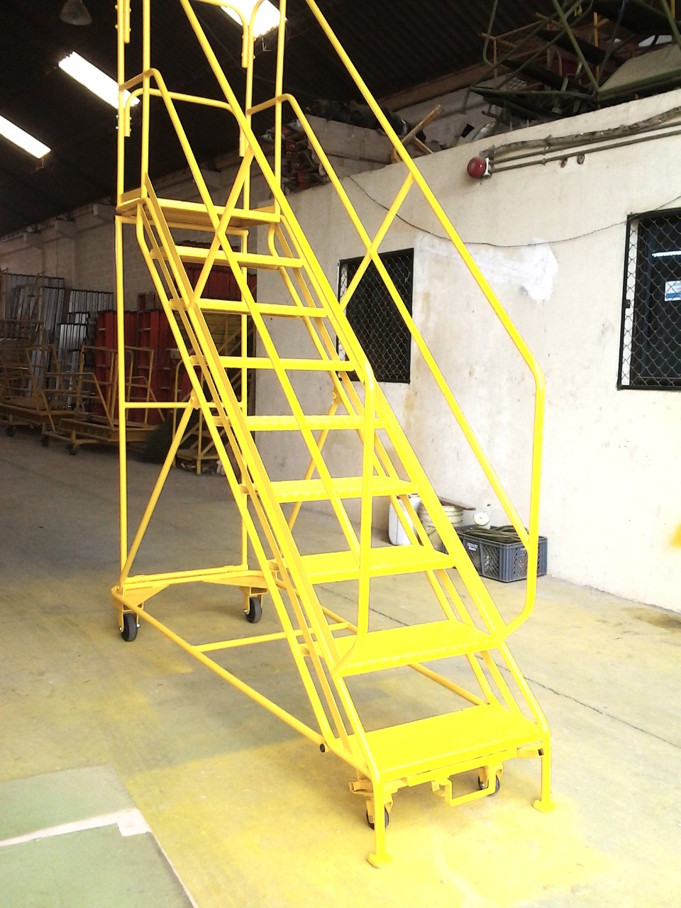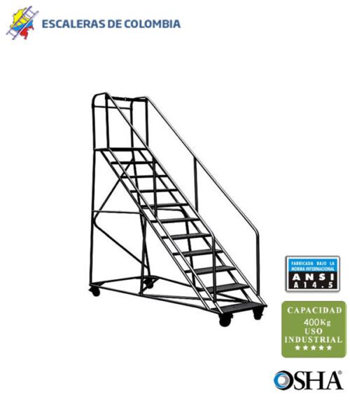 Livianas y maniobrables Plataforma y pasos en alfajor Llantas de hierro fundido Con llantas de caucho Fuertes y seguras Capacidad 200 Kg. Cumple Normas ANSI A14.7 y OSHA 1910.29 Garantía de 1 año Base anticorrosiva Acabado en laca.