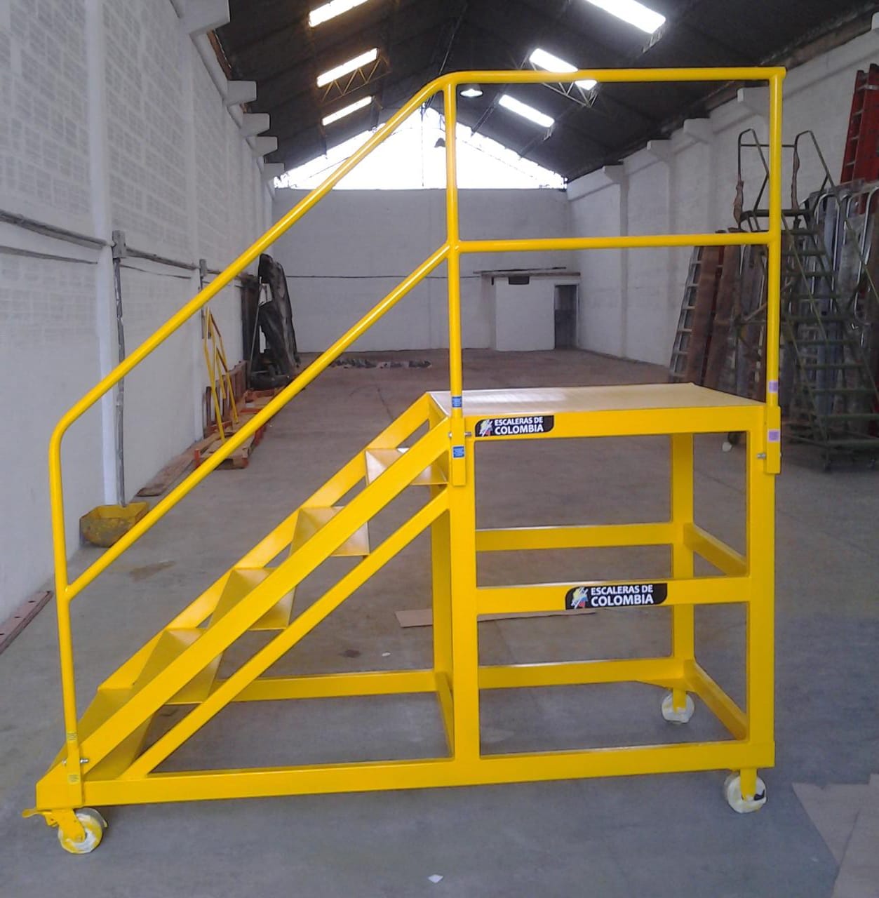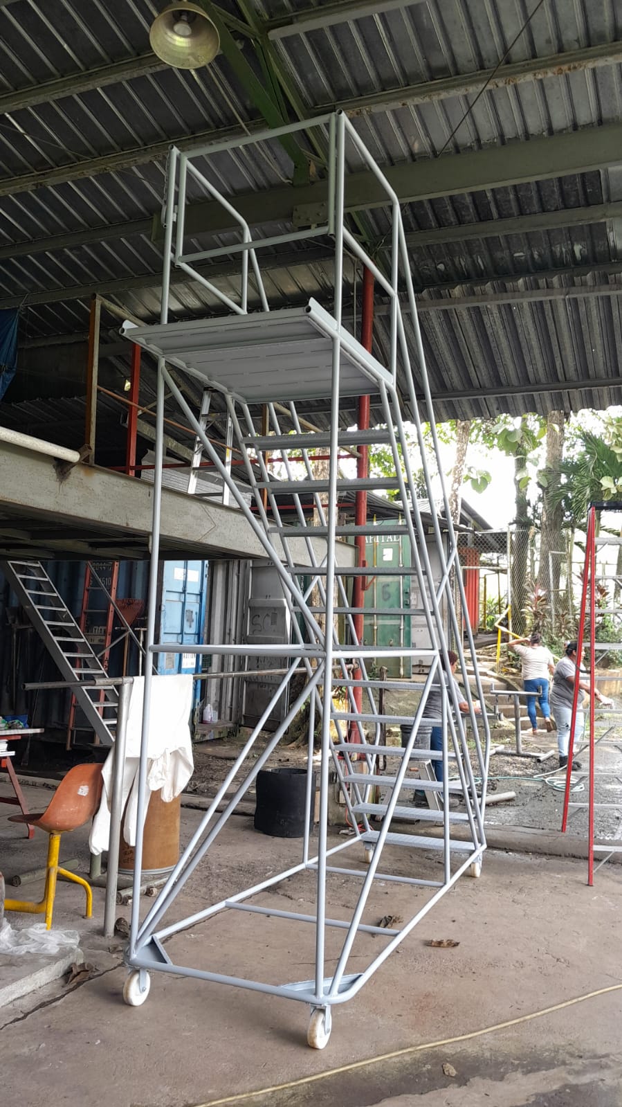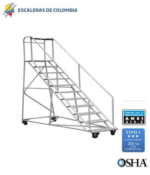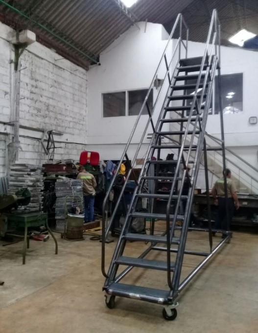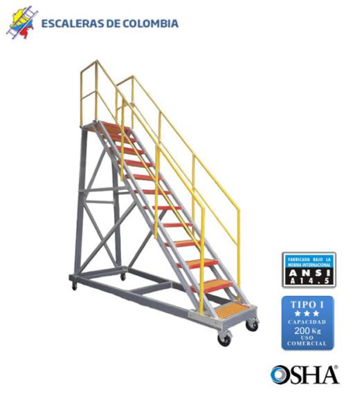 Escalera Certificada Tipo Plataforma Avión en Acero Industrial