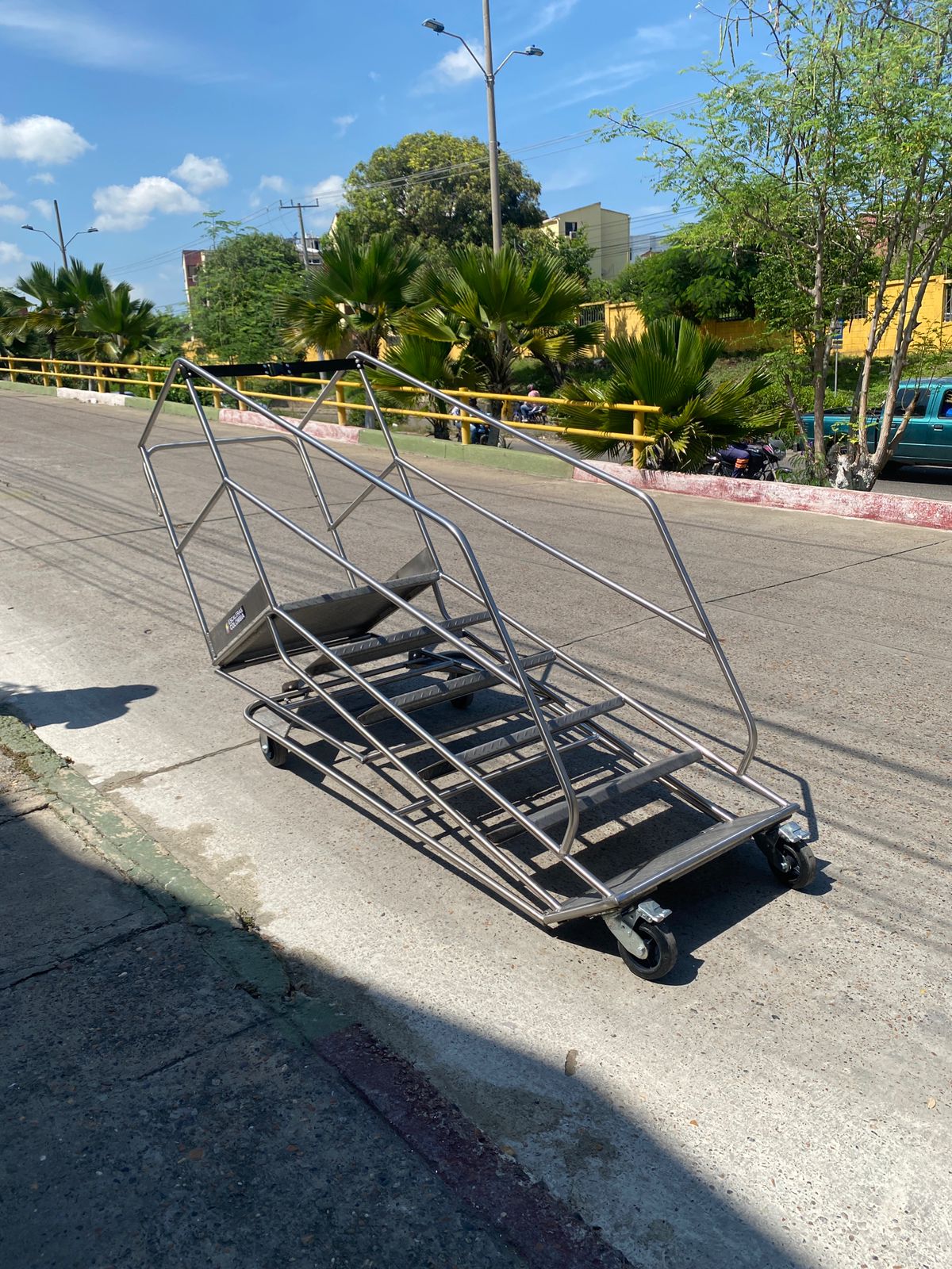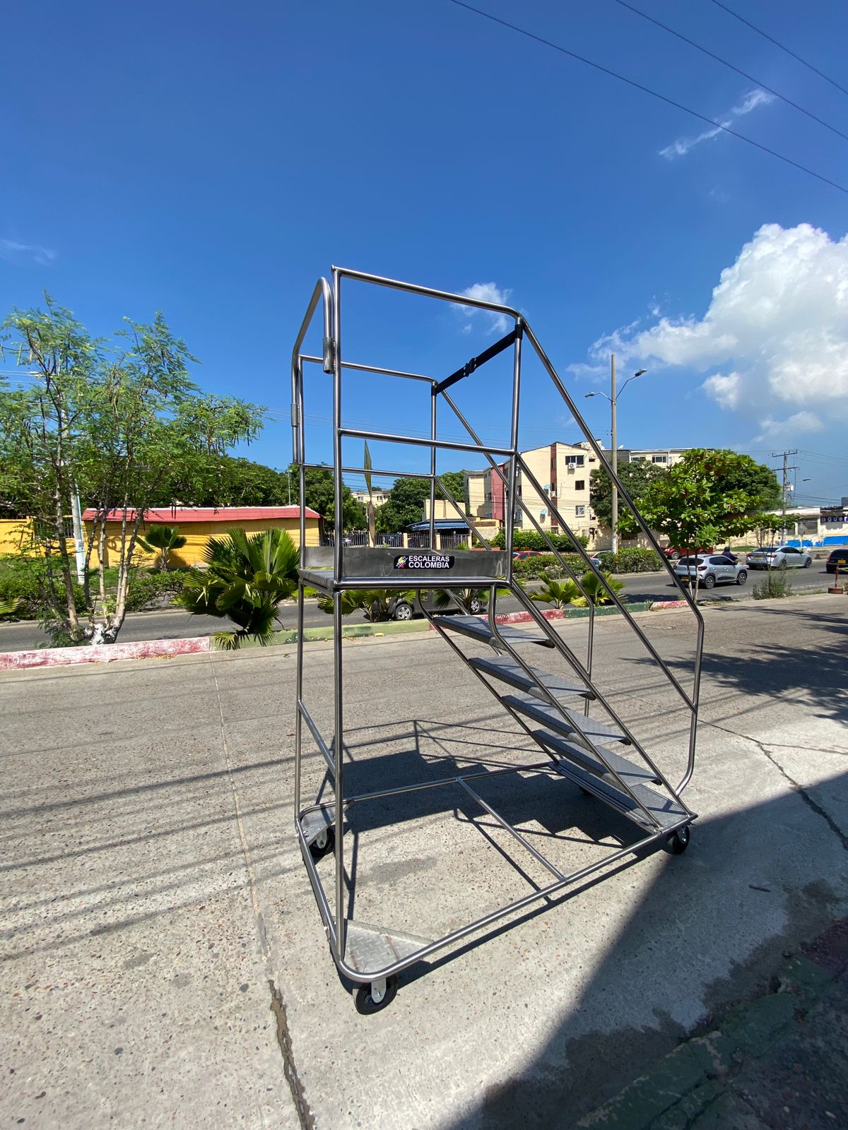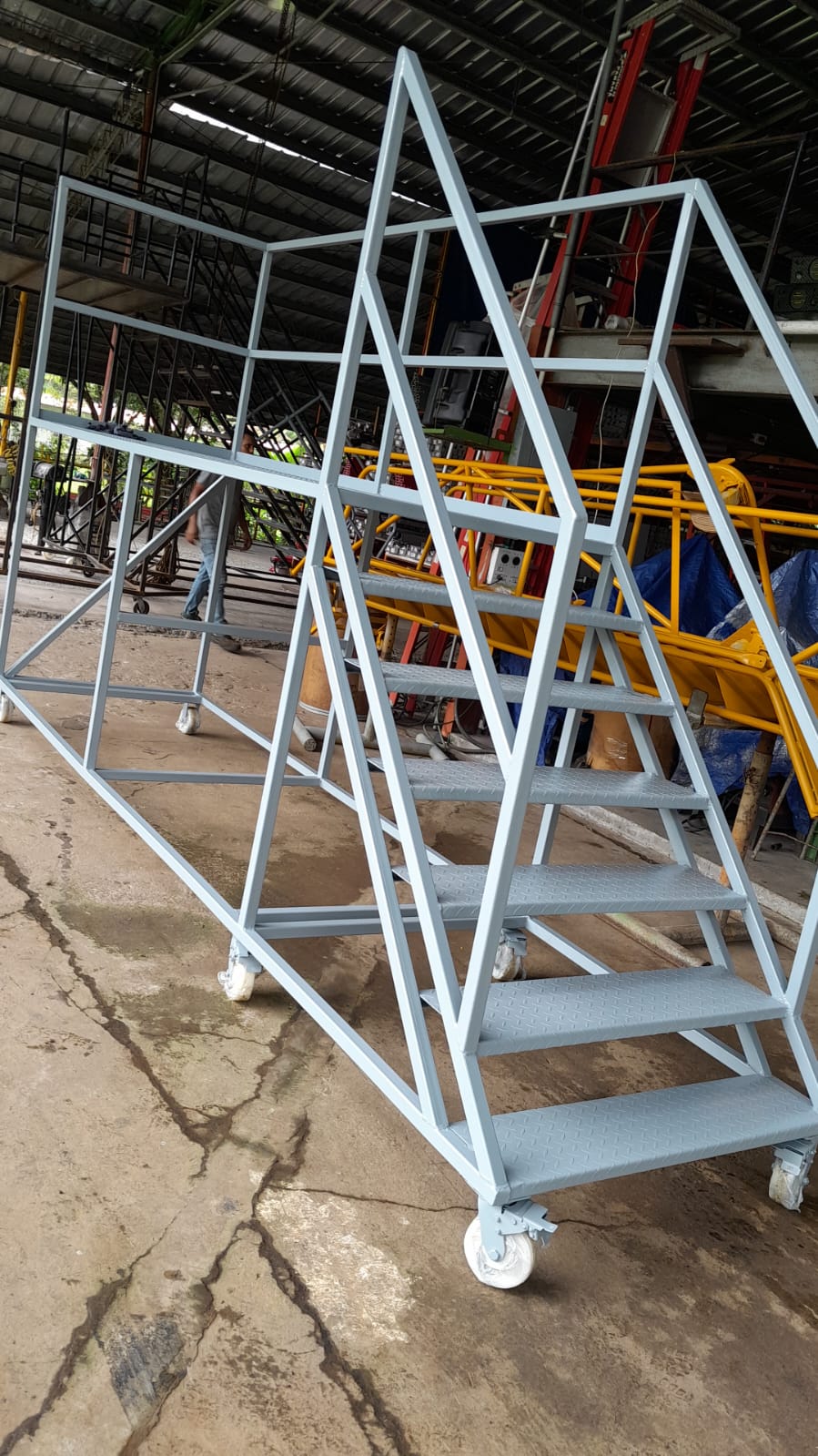 Escalera Certificada Tipo Plataforma Avión en Acero Industrial