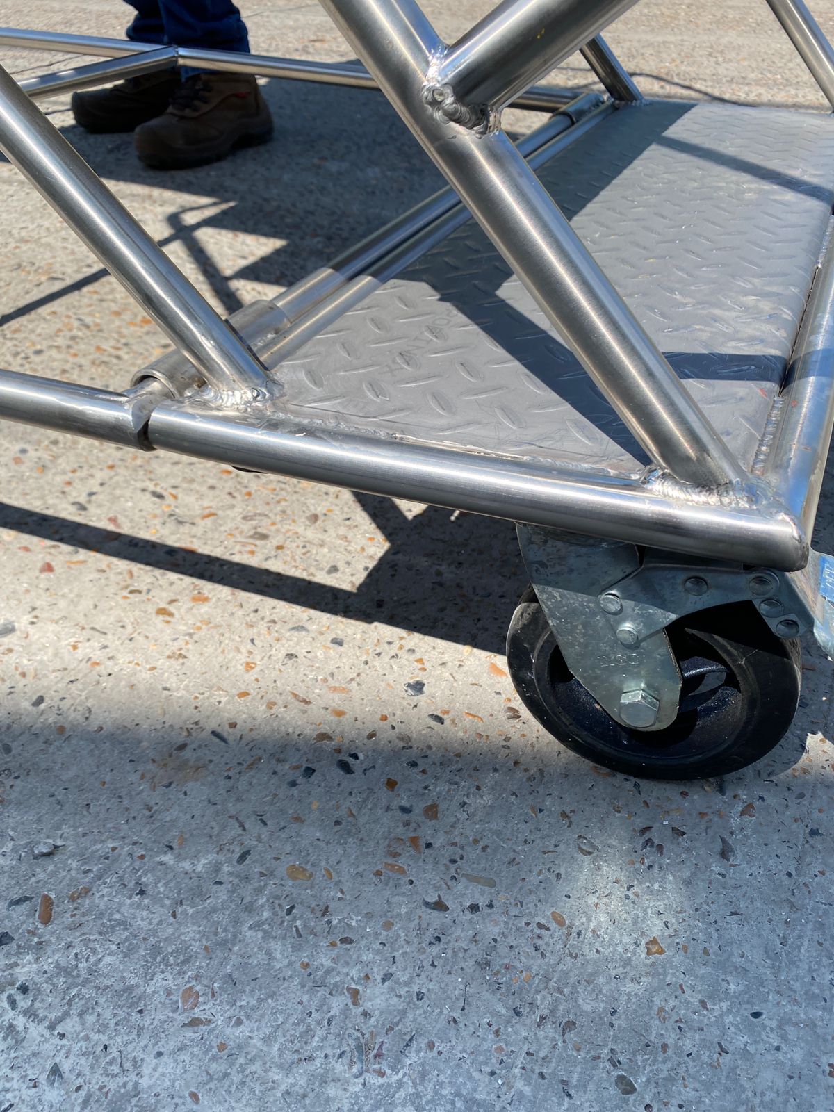 - ACABADO CRUDO. Soldaduras a Argon TIC. Plataforma y peldaños en aluminio alfajor.
