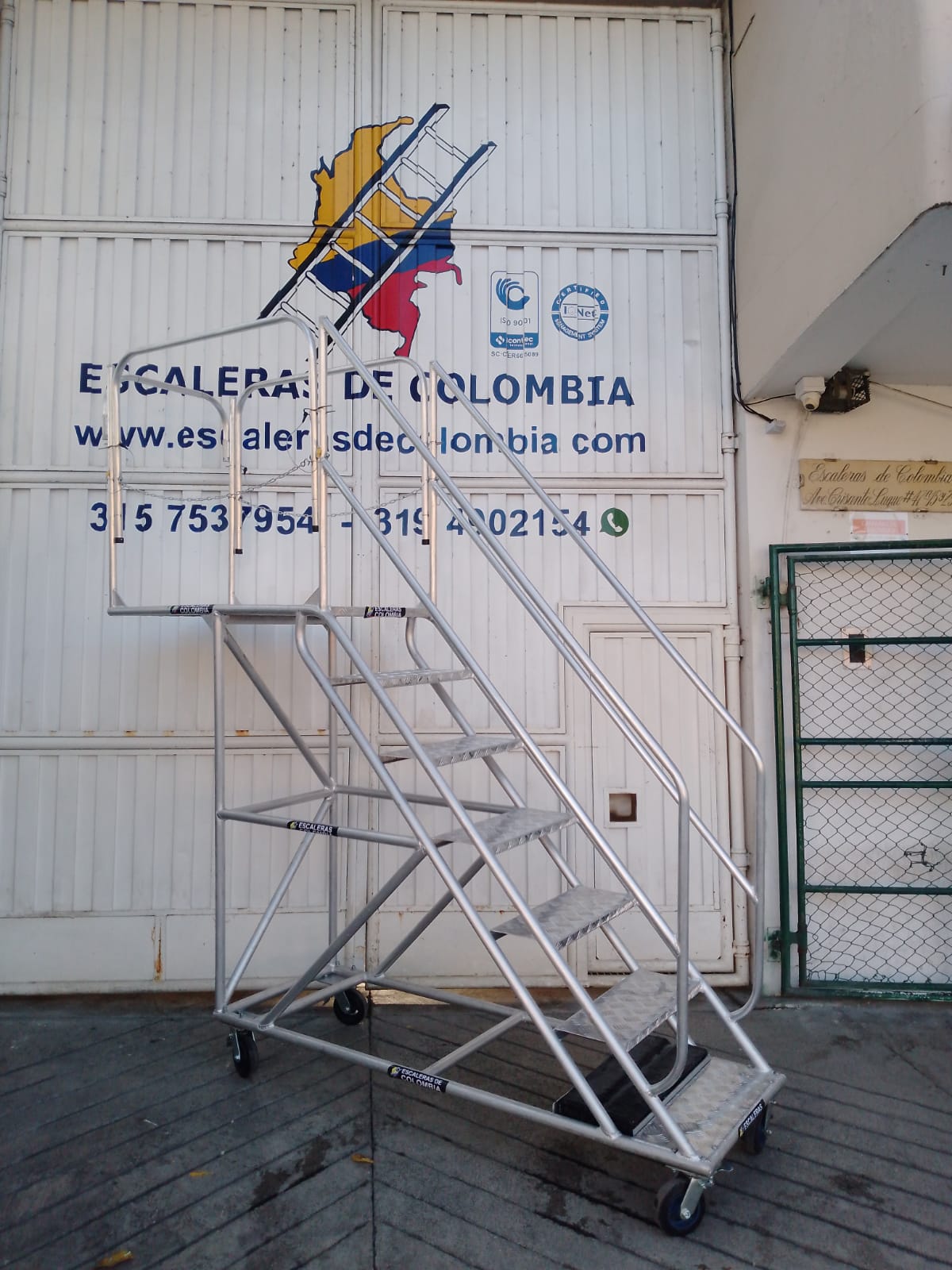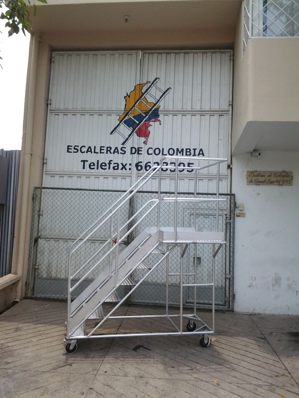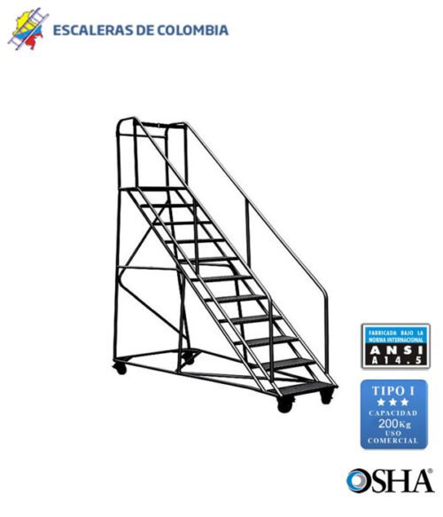 Escalera Certificada Tipo Plataforma Avión en Acero Industrial