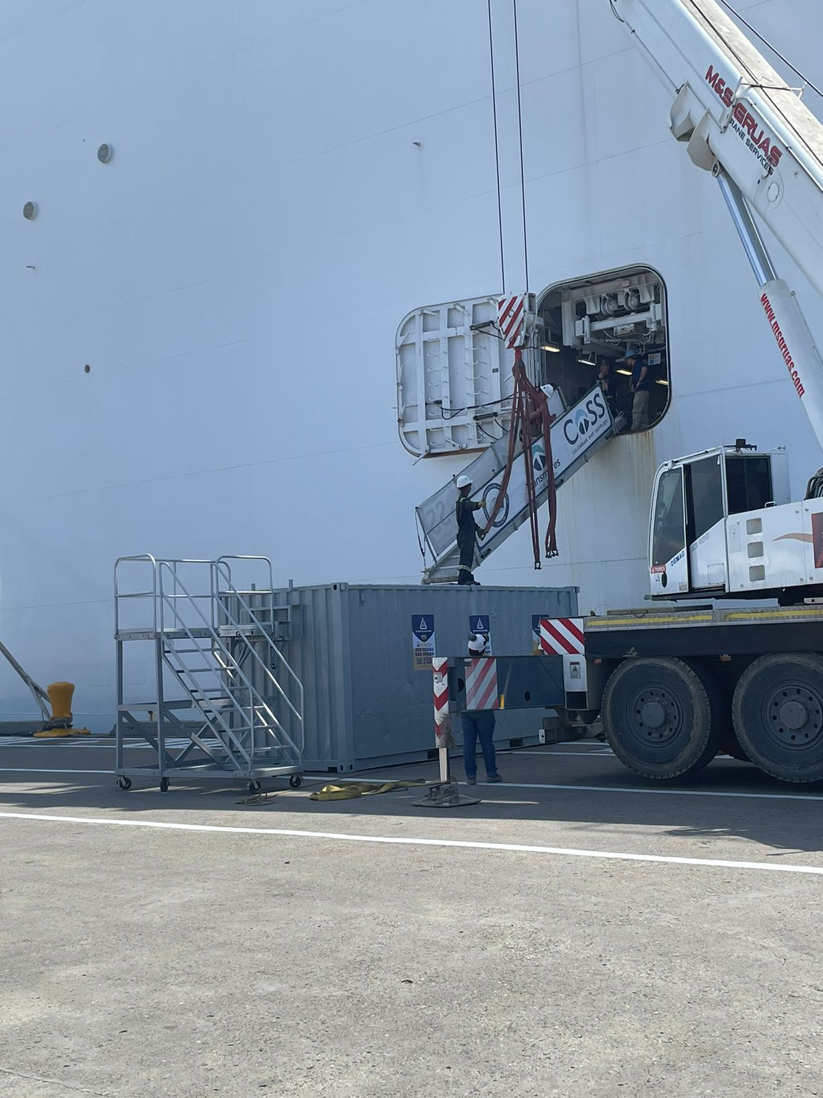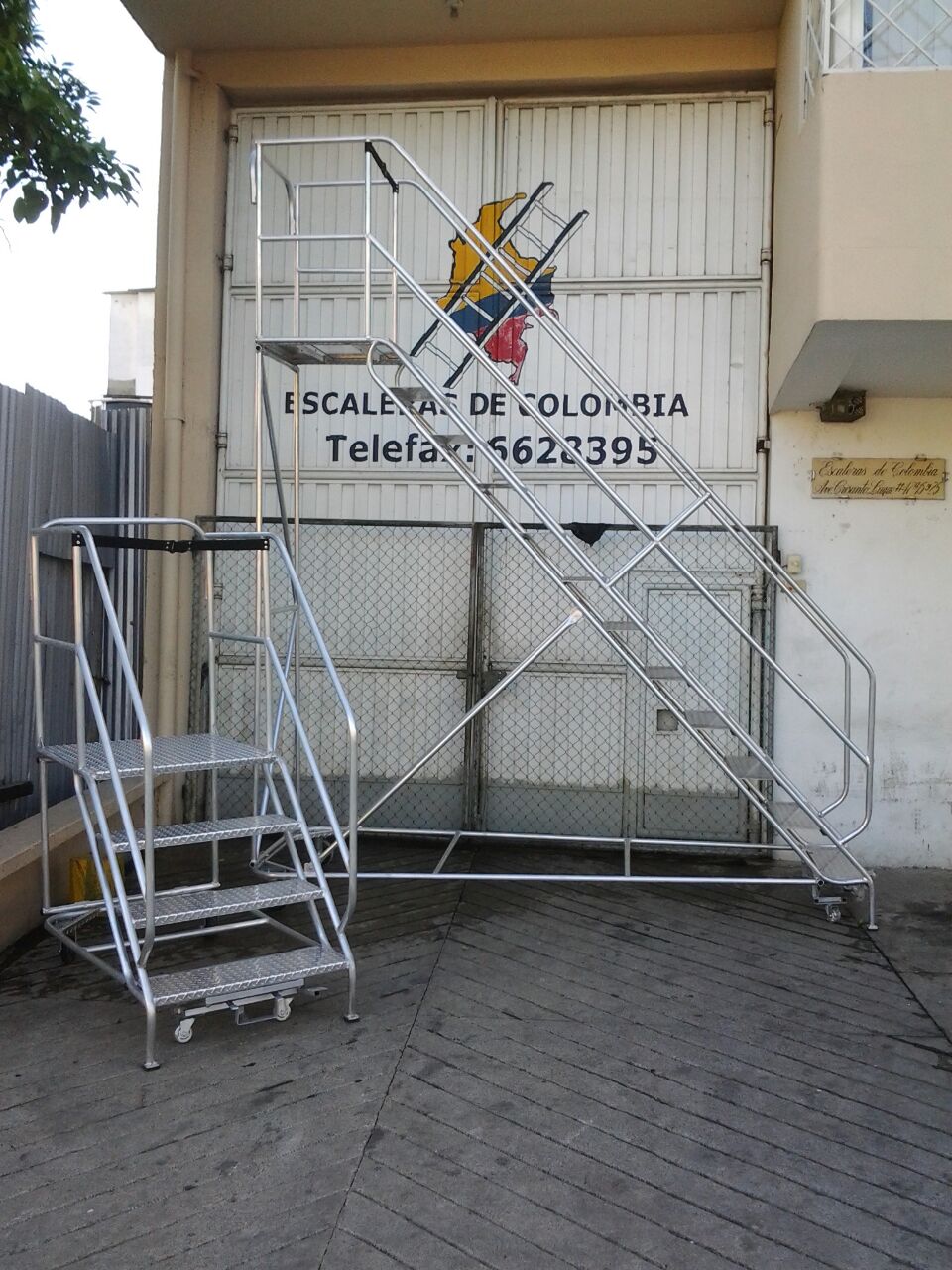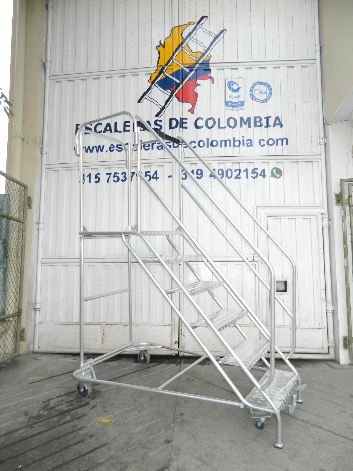 Escalera Certificada Tipo Plataforma Avión en Acero Industrial