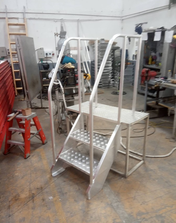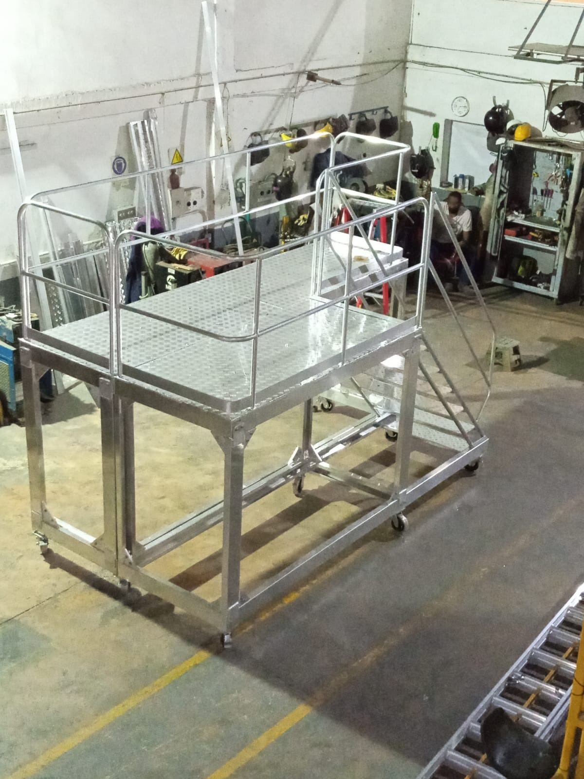 - ACABADO CRUDO. Soldaduras a Argon TIC. Plataforma y peldaños en aluminio alfajor.