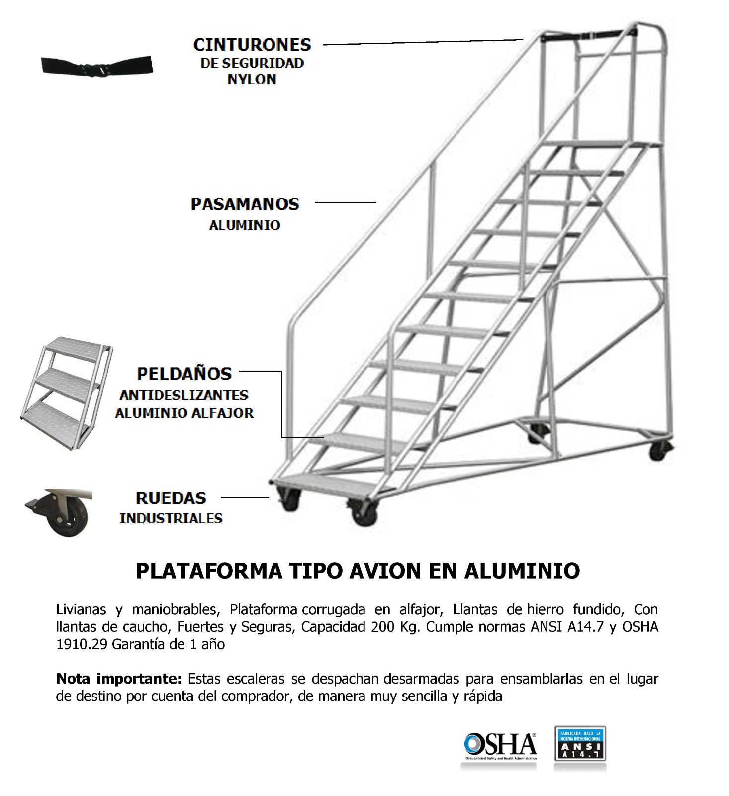 - Cumple normas ANSI A14.7 y OSHA 1910.29