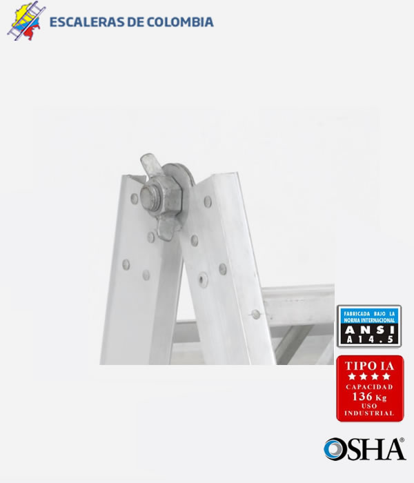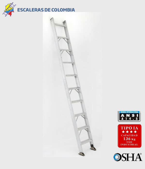 Extra Fuerte, Liviana y Aislada, Un cuerpo, Uso Industrial Liviano, 300 libras de Capacidad de Carga, o 136 Kilogramos, Uso eléctrico, Cumplen la norma ANSI 14.5, Peldaños en D o plano, en Aluminio Ranurado. Zapatas de acero galvanizado con Caucho, Garantía seis meses, Repuestos y Servicio Locales