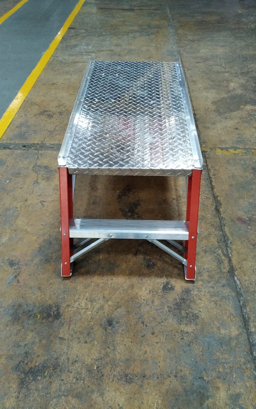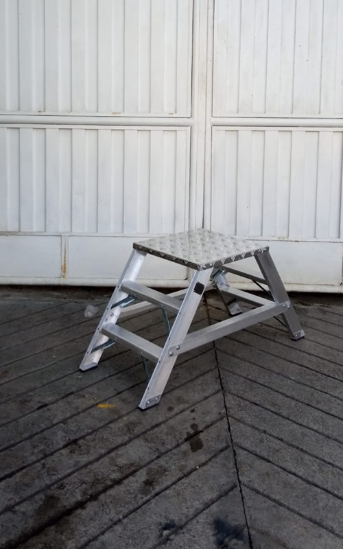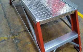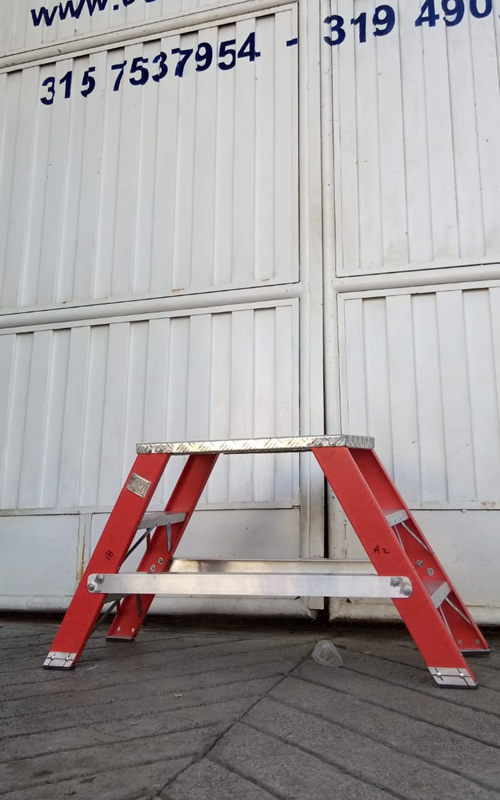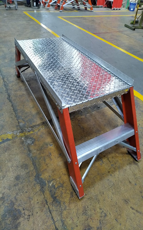 Las escaleras tipo banco tipo banco fabricadas en fibra de vidrio son escaleras auto soportables y no requieren de una superficie de apoyo. Cuentan con una plataforma y amplio espacio de trabajo.