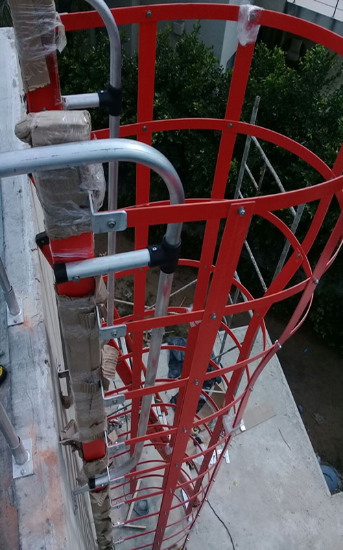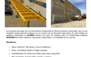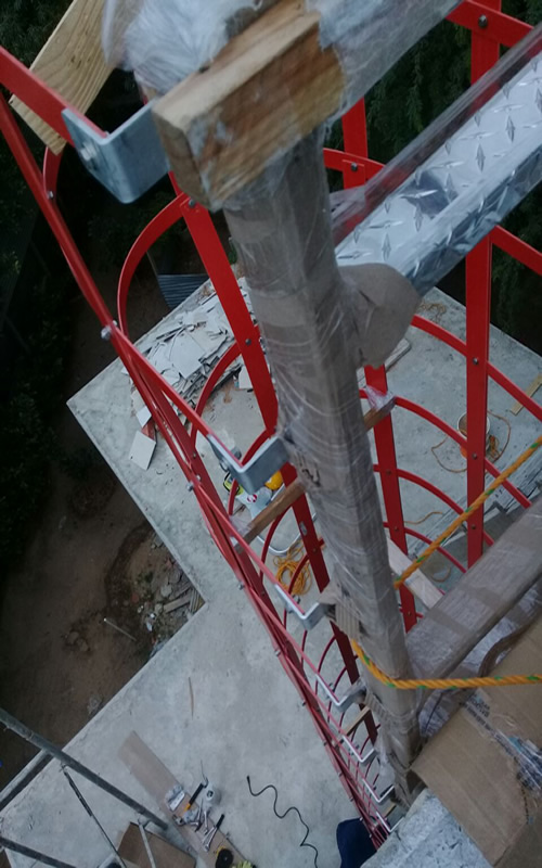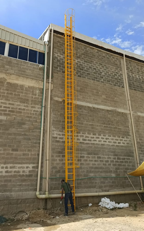 Las escaleras de gato son una magnífica solución para utilizarlas como acceso a salas de máquina, pasarelas de mantenimiento, tanques de gas o líquidos, silos, pozos de bombeo, salas de medición aérea o subterránea.