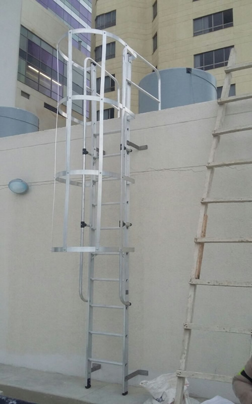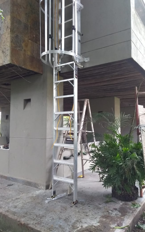 Se trata de escaleras sujetas permanentemente a una superficie vertical y del mejor sistema para acceder a un lugar al que se requiera subir o bajar, regularmente, con total seguridad. Son verticales y pueden contar con una jaula de protección y descansillo, lo que le otorga una mayor seguridad, además de ser bastante personalizables.
